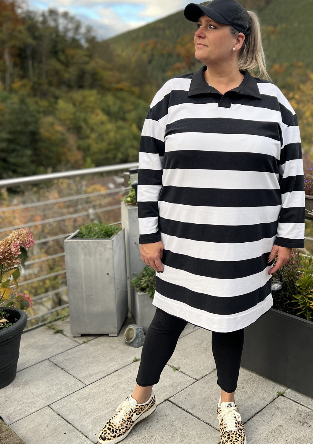 Der Kragen und die Knopfleiste aus Webware geben ihm den typischen sportlichen Stil. Du kannst zwischen zwei Längen wählen: als bequemes Shirt oder als lässiges Kleid.