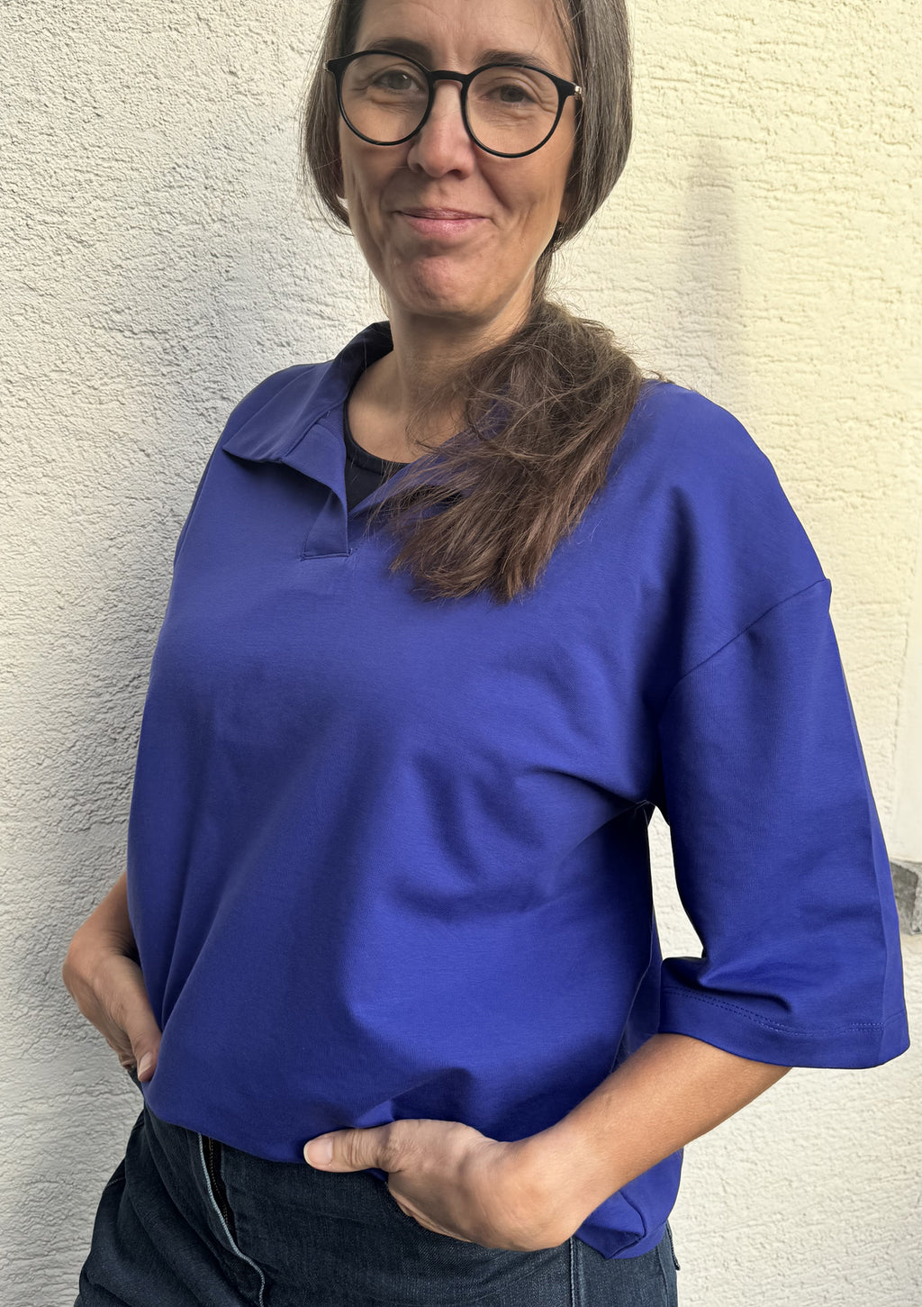 Auch bei den Ärmeln hast du die Wahl – kürzer oder lang für kühlere Tage. Der Schnitt eignet sich für Sweat oder Jersey und lässt sich gut kombinieren.
