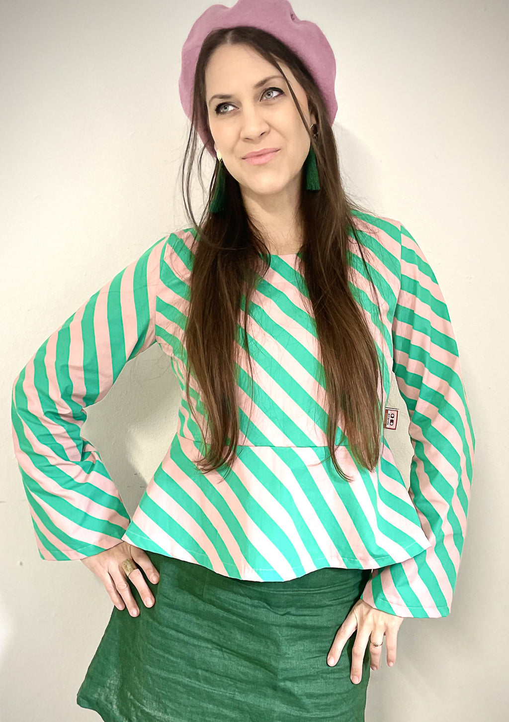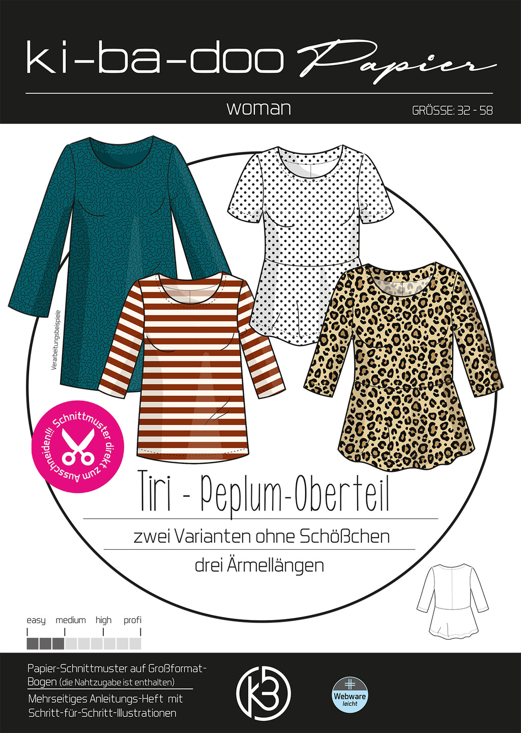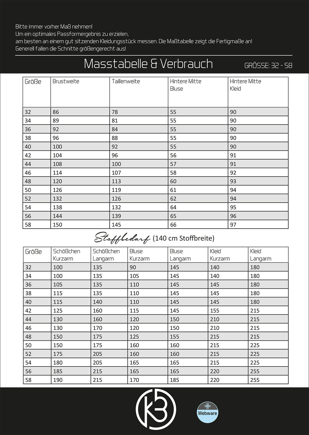 Dieses Set enthält alle Schnittmusterteile in den Größen 32-58 in Farbe auf einem Großformat Bogen und eine ausführlich bebilderte Nähanleitung als DIN A4 Broschüre.
