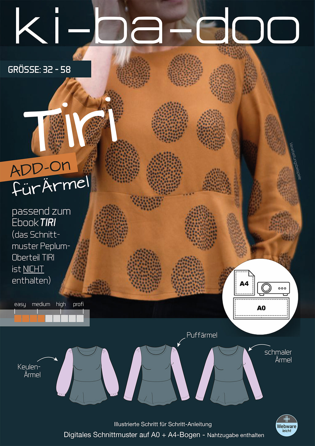 Schnittmusterergänzung Bluse Tiri inkl. DIN A4, DIN A0 & Beamer Datei | PDF zum download